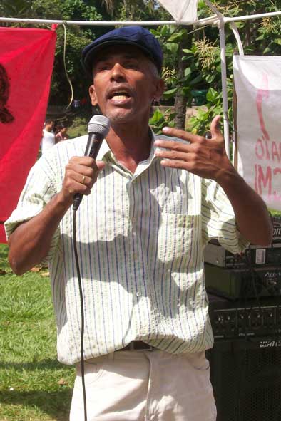 Gelson Lopes, da Cooperativa INVERTA fala aos trabalhadores na Quinta da Boa Vista, Rio de Janeiro-RJ.